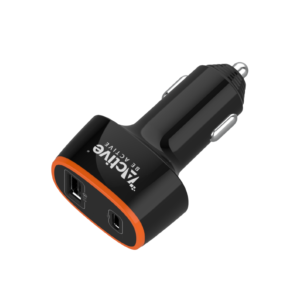 شاحن سيارة بمنفذ USB-A ومنفذ Type-C.