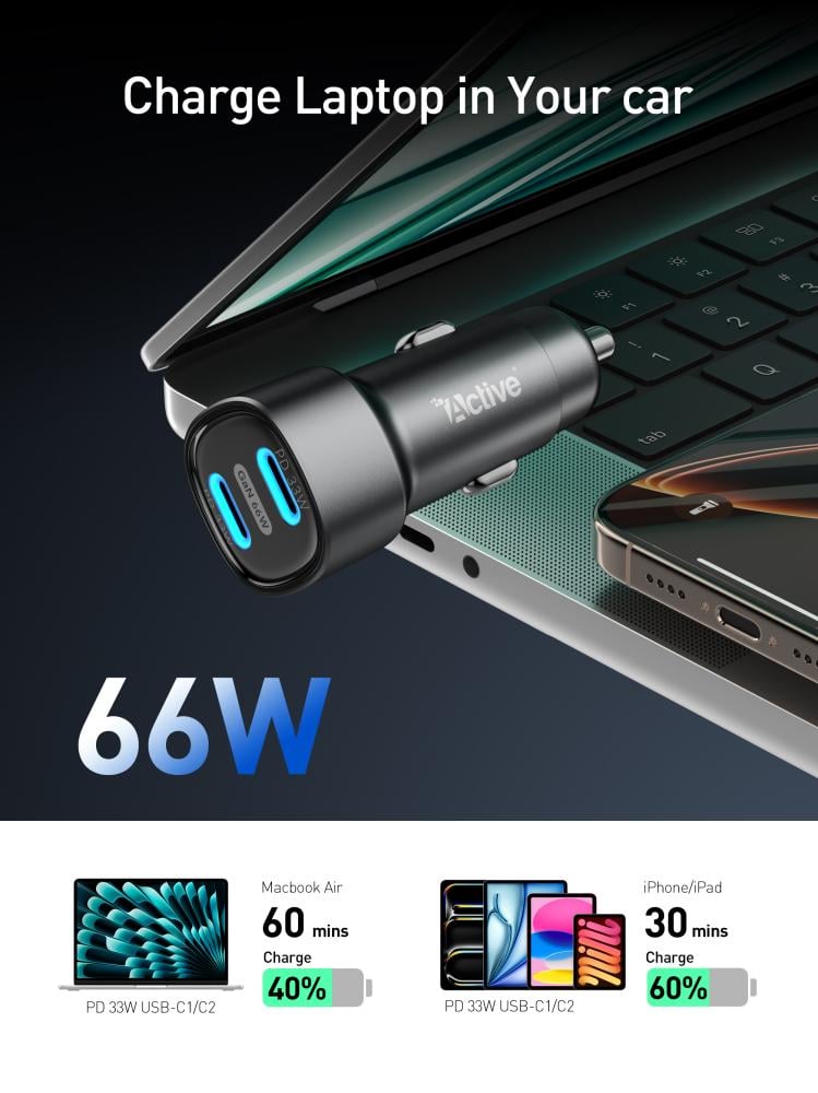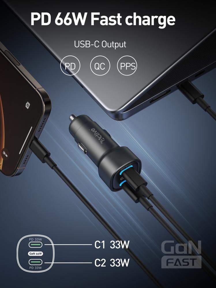 About this product:【66W Super Fast Car Charger】Active car charger reaches max 66W, USB-C1 33W, USB-C2 33W, the fast car charger also allows charging two devices at the same time.【Intelligent Power Dis...