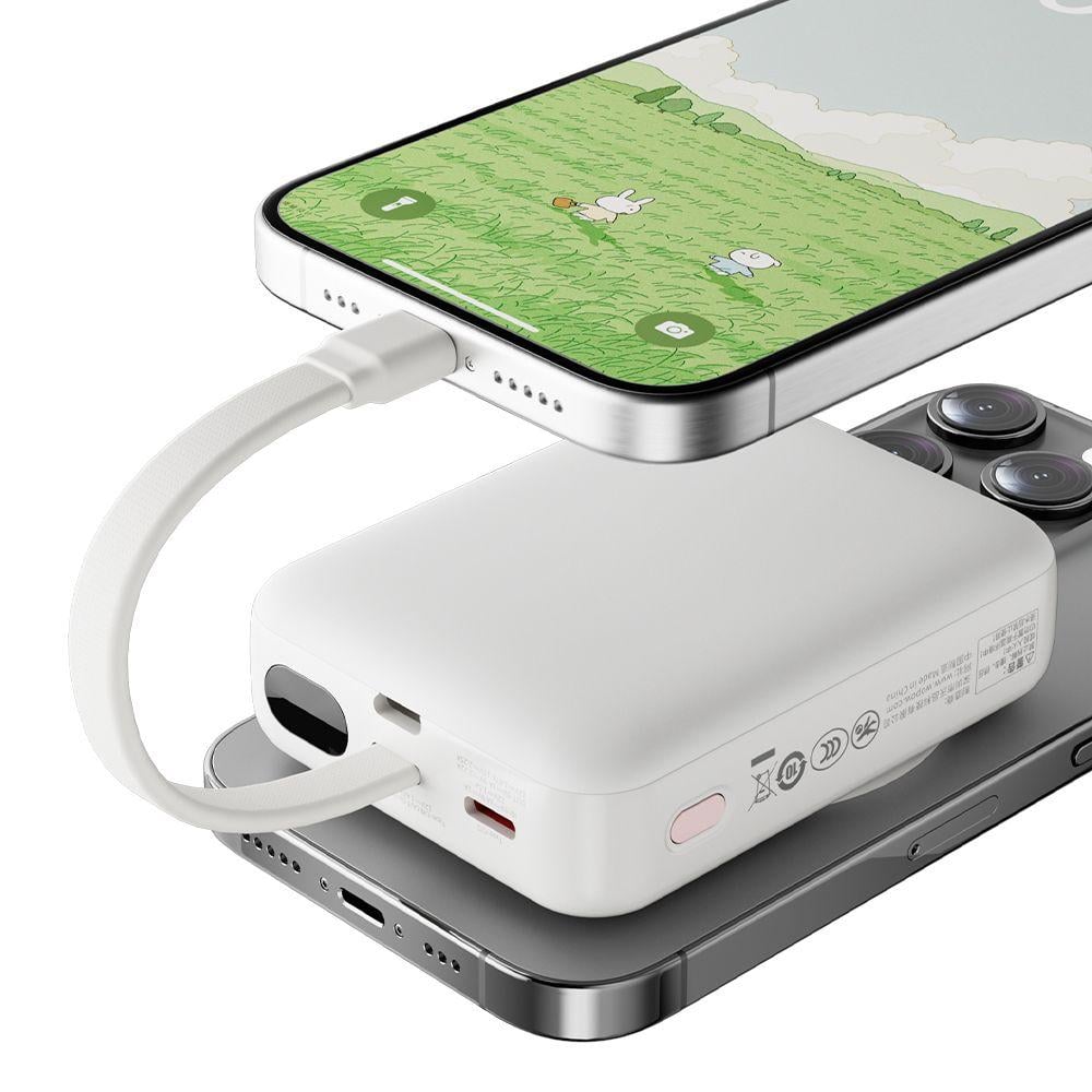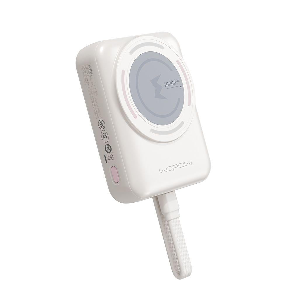 شاحن متنقل لاسلكي - باللون الأبيض .