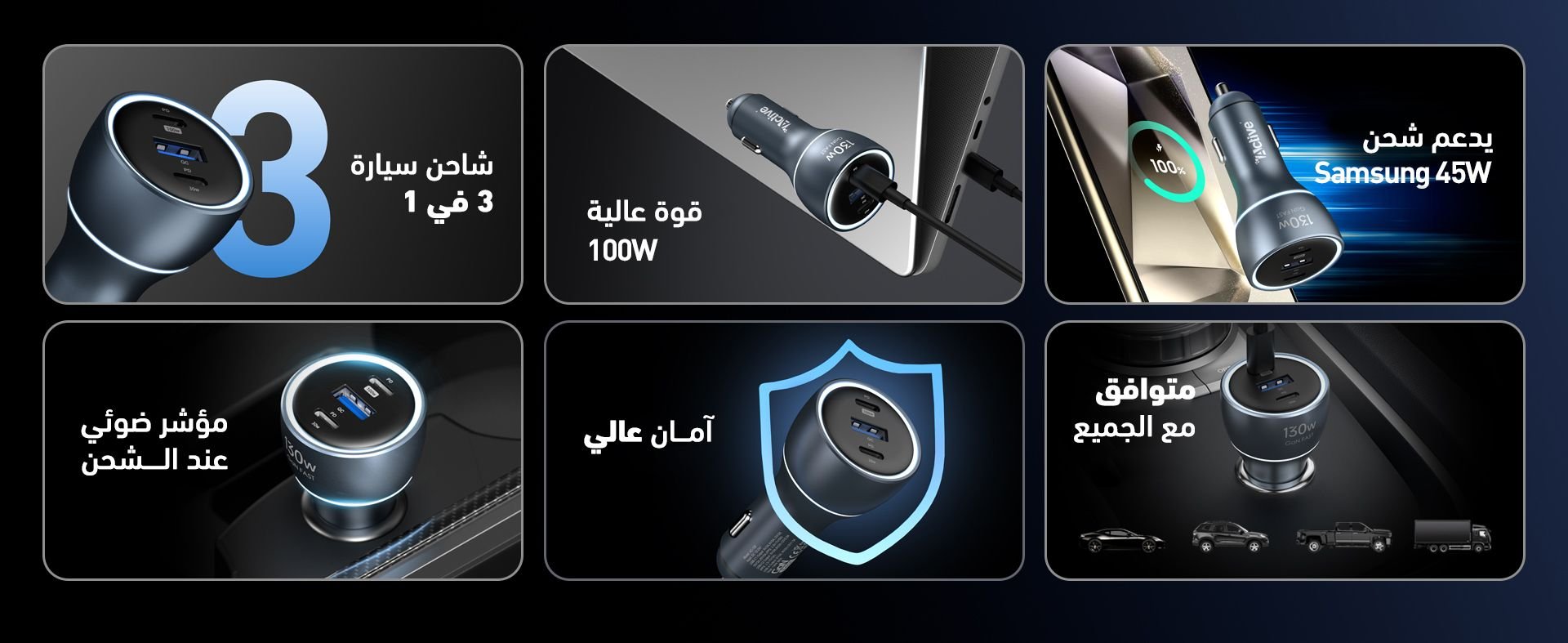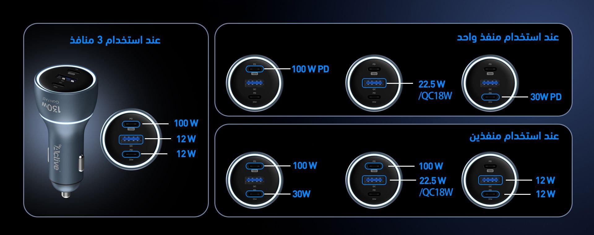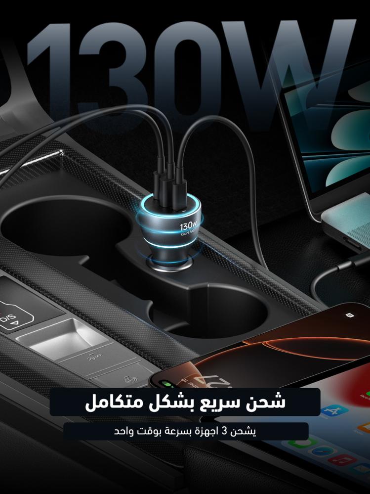 About this product:【130W Super Fast Car Charger】Active car charger reaches a maximum output of 130W. It supports USB-C1 100W, USB-C2 30W, and USB-A 22.5W. The fast car charger also allows you to charg...